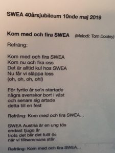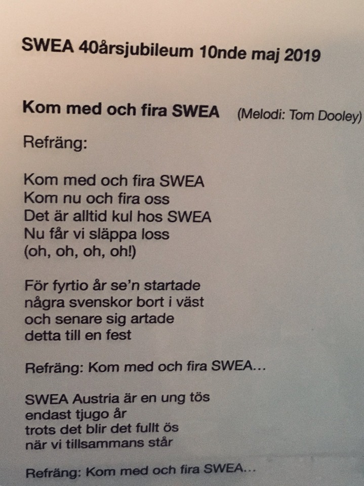 Vår egen jubileum-sång skriven av Carina Kainz sjöngs av alla sånglärkor och gav en härlig SWEA-stämning!