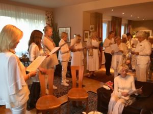 Detta firades ordentligt med sång, musik och god mat. Ett 30-tal glada Sweor samlades hemma hos Eva Jurkowitsch för att fira denna speciella dag.